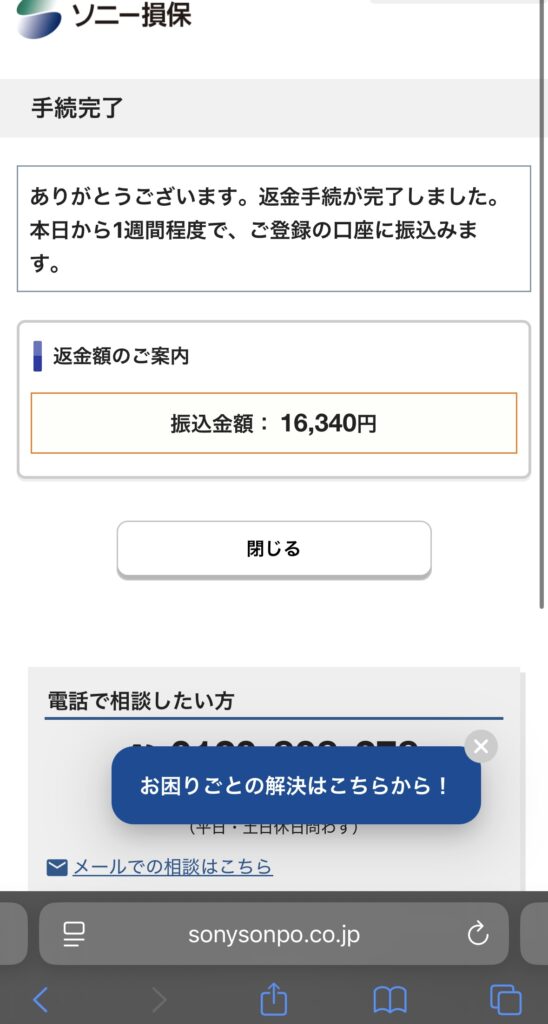 キャッシュバックの申請はソニー損保の専用アプリから簡単に完了します。